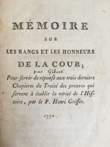 N° 49·[GIBERT (Joseph Balthasar)]. — Mémoire sur les rangs et les honneurs de la cour ; pour servir de …