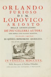 N° 166·Ariosto Ludovico, Orlando Furioso [...]; delle annotazioni de' più celebri autori che sopra esso …