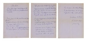 N° 1·ARTAUD (Antonin) — Pour Lise — 25 août 1935. — 3 p. in-4 (27 x 20,5 cm), encre bleue, papier …