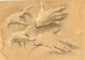 N° 548·Anonimo tedesco o lombardo tra XV e XVI secolo, Quattro studi di mani. 1485-1510.