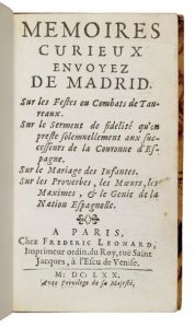 N° 1·CAREL (Jacques). Sieur de Sainte Garde]. Mémoires curieux envoyez à Madrid sur les Festes ou …