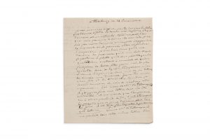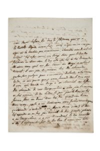 Cette cinquième vente Aristophil consacrée à l’histoire est divisée en deux parties, la première volontaire, la seconde judiciaire. À travers lettres, manuscrits et documents, mais aussi quelques livres et objets, six siècles sont ici évoqués, du XVe au XXe siècle,retraçant l’histoire de France, mais aussi celle de l’Europe, nous menant aussi en Russie (de la Tsarine Anna jusqu’à Trotski), en Amérique (avec Eisenhower, Kennedy, Bolivar et Eva Peron), en Israël avec Ben-Gurion, et jusqu’en Inde avec Gandhi.Après la Renaissance, avec François Ier et sa famille, César Borgia et Charles Quint, les Rois de France, d’Henri III à Louis XV, sont accompagnés de leurs proches et de ministres comme Richelieu et Mazarin ; on trouvera aussi une rare lettre du Masque de fer, un fragment de journal de voyage de Lapérouse, un curieux dossier sur la traite et les colonies. La Révolution est évoquée par Camille Desmoulins et le bourreau Sanson. De Napoléon, outre des bustes et statues, depuis un projet pour la défense d’Ajaccio en 1794 et une rare lettre autographe familiale, on trouvera un important ensemble de manuscrits de Sainte-Hélène destinés à ses mémoires, sur ses campagnes, sur les fortifications,et aussi des réponses aux critiques émises contre lui. L’Empire est aussi évoqué par des lettres de Joséphine (elle y annonce son prochain mariage avec le général Buonaparte), des correspondances du général Compans, du général Drouot, du soldat Robert, et un ensemble de documents du Roi George IV d’Angleterre autour du Traité de Paris et du Congrès de Vienne. Après le Second Empire, avec Napoléon III, le baron Haussmann, et une correspondance politique de Gambetta, et la guerre de 1870 avec Jules Favre, les remous révolutionnaires avec Jaurès ou Trotski, la XVIII guerre de 1914-1918 revit à travers les carnets du général Duplessis, extraordinaire reportage critique au jour le jour ; la seconde guerre mondiale est évoquée par Jean Moulin, Léon Blum, et des lettres du général de Gaulle. Enfin, mêlés à ces figures historiques, quelques écrivains apportent leur témoignage : François de Sales, La Rochefoucauld, Saint-Simon sur le mariage de Louis XV, Montesquieu, Voltaire, Sade, et d’autres, jusqu’à Jean-Paul Sartre sur la guerre d’Indochine. Thierry Bodin