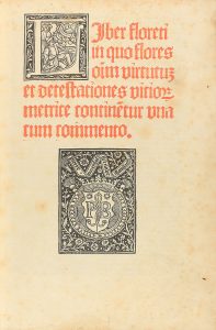 N° 17·.1499.. LIBRO: .(INCUNABLE).. .[PSEUDO-BERNARDUS CLARAVALLENSIS].. .LIBER FLORETI IN QUO FLORES …