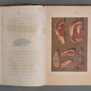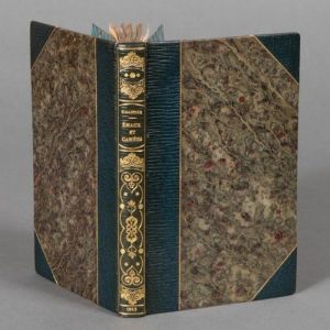 LIVRES ANCIENS : Chimère de la Cabale de Rotterdam (1691) – Pharmacopée Universelle (1764) – Manuscrit (1650) – Essais de Montaigne (1659) – Mémoires de l’Histoire de Lyon (1573) – Chronique de Savoie (1561). LIVRES DIVERS DU XIXe SIÈCLE : Flore lyonnaise (1827) – Traité raisonné des arbres fruitiers (1810) – Compositions de Chenavard (1860) – Théâtre érotique de la rue de la Santé (1864) – Pisciceptologie (1823) – Armorial du Beaujolais (1853) – Le Corbusier (1923) – Divers Jules Verne chez Hetzel Émaux et Camées par Théophile Gauthier (E. O. 1852) belle reliure signée.Livre de prière sur soie d’après les enluminures des manuscrits du XIVe siècle dans un coffret éditeur monogrammé, reliure signée (50 exemplaires). GASTRONOMIE : Appert (1813) – Brillat Savarin (1848) – Curnonsky (1953) – Dali (1973) – Escoffier (1907) – Gouffé (1867) – Massialot (1732) – Menon (1769) – etc.ARTS, LITTÉRATURE , LIVRES MODERNES : L’Ours par Béraud – Rémi de Gourmont - Peret illustré par Tanguy – Raymond Quenau, Rabier, Œuvres complètes de Balzac, Camus, Dostoïevski, Hemingway, Molière, Sartre, Shakespeare. Steles de Victor Segalen, etc.Pouyaud & Geoffray, Suite de sons… et de couleurs pour piano. Parallèlement par Verlaine (1889 – E. O.).