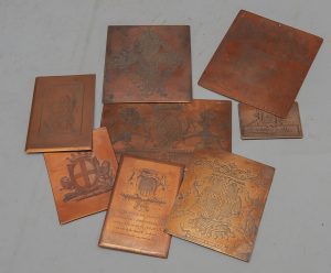 N° 55·CUIVRES originaux pour ex-libris armoriés. 25 ex., formats divers, dont Cruzay de Landry, …