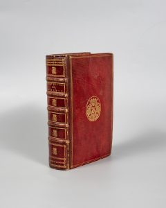 N° 95·MONTESQUIEU. Il Tiempio di Gnido. Parigi, 1766. Grand in-12, mar. rouge, triple filet doré, armes …