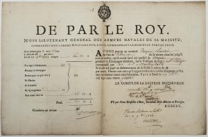 N° 150·- MARINE. BREST (29) 1734. “DE PAR LE ROY. Le Comte de La LUZERNE BRIQUEVILLE Lieutenant …