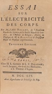 N° 95·.1754.. LIBRO: .(CIENCIAS).. .NOLLET, ABBÉ:. .ESSAI SUR L´ÉLECTRICITÉ DES CORPS.. Paris: Chez …