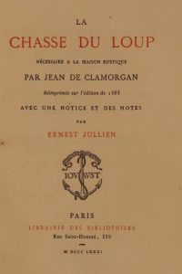 N° 17 ·CLAMORGAN (Jean de). La chasse du loup nécessaire à la Maison rustique. Paris, Jouaust, 1881. …