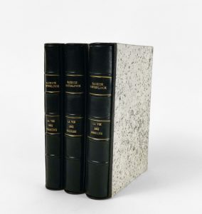 N° 5105·MAETERLINCK: 3 vol., in 8°, demi chagrin noir, étuis - La Vie des Abeilles. - La Vie des Fourmis. …
