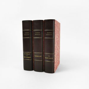 N° 5108·PERRAULT - LEMARIE: Trois Contes. s. d.; 3 vol. chag. rouge, un des 30 ex. num. du tirage de tête …