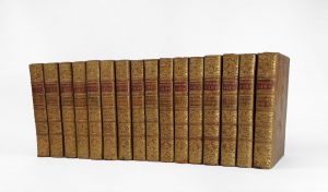 N° 5114·VOLTAIRE : Oeuvres complètes. Genève, 1768-1767; 16 vol. in 4°, vaud blond jaspé orné de …