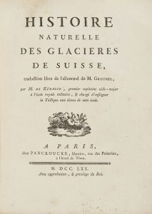 N° 5153·HELVETICA. GROUNER et KERALIO: Hist. Naturelle des Glaciers de Suisse. Paris, Panckoucke, 1770; In …