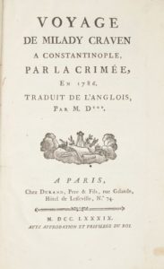 N° 794·M. D***. Voyage de Milady Craven à Constantinople, par la Crimée, en 1786. Paris, Durand père & …