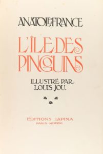 N° 44·1926. LIVRE : (BIBLIOPHILIE). FRANCE, ANATOLE ; JOU, LOUIS (Illustr.) : L'ÎLE DES PINGOUINS. …
