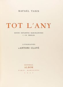 N° 65·1943. LIVRE : (BIBLIOPHILIE). TASIS, RAFAEL : TOT L'ANY. DOTZE ESTAMPES BARCELONINES I UN PROLEG. …
