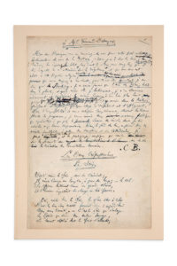 Les collections ARISTOPHIL • 44 • POÈTES & ÉCRIVAINS DES XIXE-XXE SIÈCLES - par AGUTTES. LUNDI 27 SEPTEMBRE 2021 à 14h15 Aguttes Neuilly. Nous sommes à votre disposition pour toute demande d’envoi de scans ou de photos des lots. VOUS pouvez enchérir via la plateforme Drouot Digital (+1,8 % HT) Avec INSCRIPTION, N'oubliez pas de vous inscrire avant le lundi 27 septembre 11h00. Par téléphone ou sur ordre d’achat ferme Ou enchères téléphoniques en envoyant directement votre demande d’ordre ou votre réservation de ligne à l’étude téléphone : + (0) 1 41 92 06 44