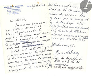 ADER Nordmann. Paris. COLLECTION JACQUES CREPINEAU - UNE VIE ENTRE THEATRE ET MUSIC-HALL - PARTIE II. JEUDI 7 OCTOBRE 2021 à 14H00 Salle des ventes Favart, 3, rue Favart 75002 Paris. Nous sommes à votre disposition pour toute demande d’envoi de scans ou de photos des lots. vous pouvez enchérir via la plateforme Drouot Live (+1,8 % HT) Avec INSCRIPTION AVANT LE JEUDI 7 OCTOBRE A 12H00 ou, par téléphone ou sur ordre d’achat ferme Ou enchères téléphoniques en envoyant directement votre demande d’ordre ou votre réservation de ligne à l’étude téléphone : Anne-Lise PERNIN – Tel : 33 (0) 1 78 91 10 03 – E-Mail : alpernin@ader-paris.fr