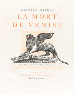 N° 61·.1936-. LIBRO: .(BIBLIOFILIA)-. .BARRÈS, MAURICE:--.LA MORT EN VENISE.--Lyon: Cercle Lyonnais du …