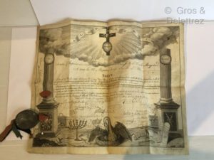 N° 23·"[Franc-Maçonnerie] Certificat en partie manuscrit de Jacques Thibaud, membre d'une confrérie …