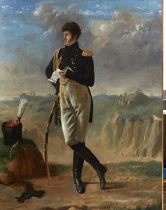 N° 44·Huile sur toile : Portrait en pied d'un capitaine d'état-major des chasseurs à cheval, peut-être …