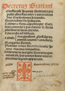 N° 141·1514. LIBRO: (DERECHO CANÓNICO). GREGORIO IX: DECRETUM GRATIANI GLOSSIS JOANNIS THEUTONICI …