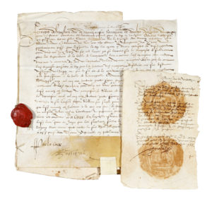 N° 20·ENRICO III re di FRANCIA, Documento pergamenaceo con firma autografa, legato con antico spago ad …