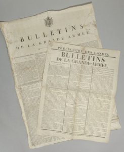 N° 3·AFFICHES DU BULLETIN DE LA GRANDE ARMÉE. 2 grandes affiches : 74 x 54 cm (mouillures, …