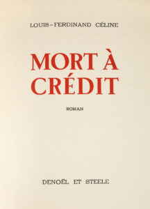 N° 120·CÉLINE (Louis-Ferdinand). — Mort à crédit. — Paris, Denoël & Steele, Paris, 1936, in-8, …