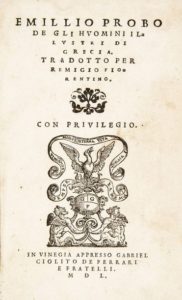 N° 34·Greek history of 16th century. PROBO. De gli uomini illustri di Grecia. PROBO, Emilio. De gli …
