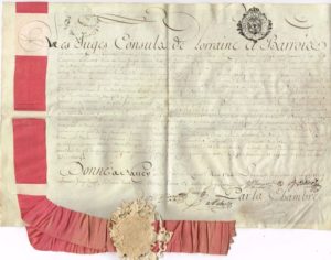 N° 117·LORRAINE / Rare brevet de Marchand du Duché de Lorraine, sur vélin (36 x 24,5 cm), avec ruban de …