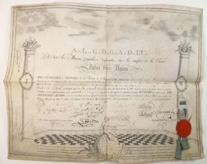 N° 132·FRANC-MACONNERIE SOUS L’EMPIRE / Brevet sur vélin (43,5 x 34,5 cm) gravé des symboles …