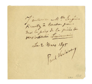 N° 51·VERLAINE Paul, Biglietto autografo firmato. Datato 2 marzo 1895.