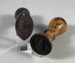 N° 159·[BRETAGNE - CHATEAUNEUF-DU-FAOU] - DEUX MATRICES DE SCEAU en bronze : - La première de forme ronde …