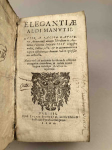 N° 221·ALDE MANUCE LE JEUNE (1547-1597). Elegantiæ Aldi Manutii. Paris, Lucas Bruneau, 1600. In-12, (12 …