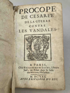 N° 277·PROCOPE DE CESAREE (circa 500-565). De la guerre contre les Vandales Paris, Guillaume de Luynes, …