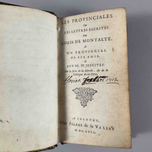 N° 40·Blaise Pascal, Les provinciales ou les lettres escrites par Louis de Montalte à un provincial de …