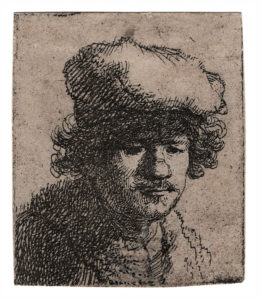 N° 106·Rembrandt Harmenszoon van Rijn, Autoritratto con cappello tirato in avanti. 1630 ca.