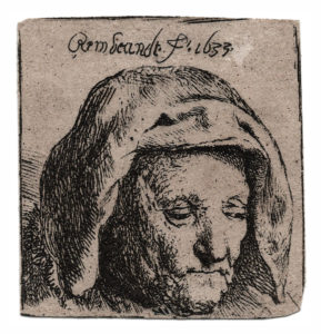 N° 110·Rembrandt Harmenszoon van Rijn, La madre dell'artista con copricapo di stoffa e lo sguardo in …