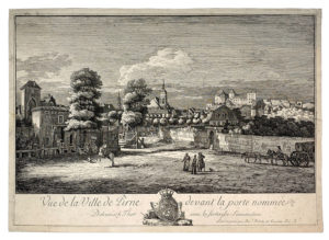 N° 22·Bernardo Bellotto, Vue de la Ville de Pirne devant la porte nommée Dohnaiszh Thor avec la …
