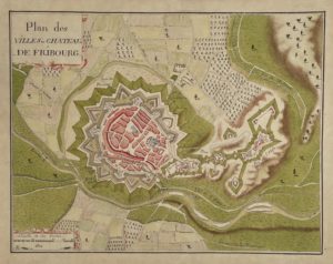 N° 17·FRIBOURG — Dessin intitulé « Plan des villes et châteaux de Fribourg ».
