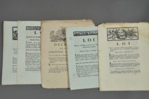 N° 671·CLERGÉ (CONSTITUTION CIVILE DU). 5 imprimés révolutionnaires. " Loi relative au serment à …