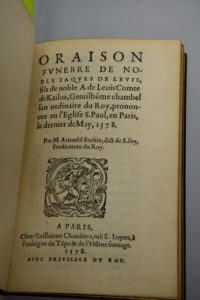 N° 187·SORBIN (Arnaud), 1532-1606 : Oraison funèbre de noble Jacques de Lévis, fils de noble A. de …