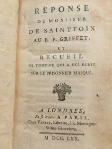 N° 201·[MASQUE de FER - SAINTFOIX & GRIFFET]. Réponse de Monsieur de Saintfoix au R. P. Griffet, et …