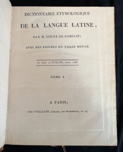 N° 79·M.COURT DE GEBELIN Dictionnaire étymologique de la langue latin. Paris, chez Guillaume. Sans …