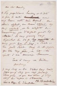 N° 8·Charles Baudelaire. 1821-1867. Écrivain poète. L.A.S. à Paul Meurice. Hôtel de Dieppe, rue …