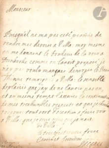 ADER Nordmann. Paris. LETTRES & MANUSCRITS AUTOGRAPHES - DOCUMENTS ANCIENS - LOTS 362 À 594 - . MERCREDI 5 JUILLET 2023 à 14h00. Vente Salle des ventes Favart, 3, rue Favart 75002 Paris. Vous pouvez enchérir via la plateforme DROUOT LIVE (+1,8 % HT) Avec INSCRIPTION avant MARDI 4 JUILLET à 12h00. Contact pour renseignement : Responsable de la vente à l’étude téléphone : Marc GUYOT – Tel : 33 (0) 1 78 91 10 11 – E-Mail : marc.guyot@ader-paris.fr