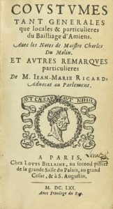 N° 99·---1661---. LIBRO: ---(DERECHO)---. ---RICARD, IEAN-MARIE:--- ---COUSTUMES TANT GENERALES QUE …
