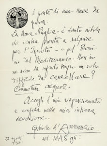 N° 19·D'Annunzio Gabriele, Annotazione autografa su lettera di d’Annunzio riprodotta, e altre 2 lettere …