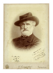 N° 99·Verdi Giuseppe, Dedica e firma autografa su ritratto all'albumina. Datata luglio 1899, Montecatini.